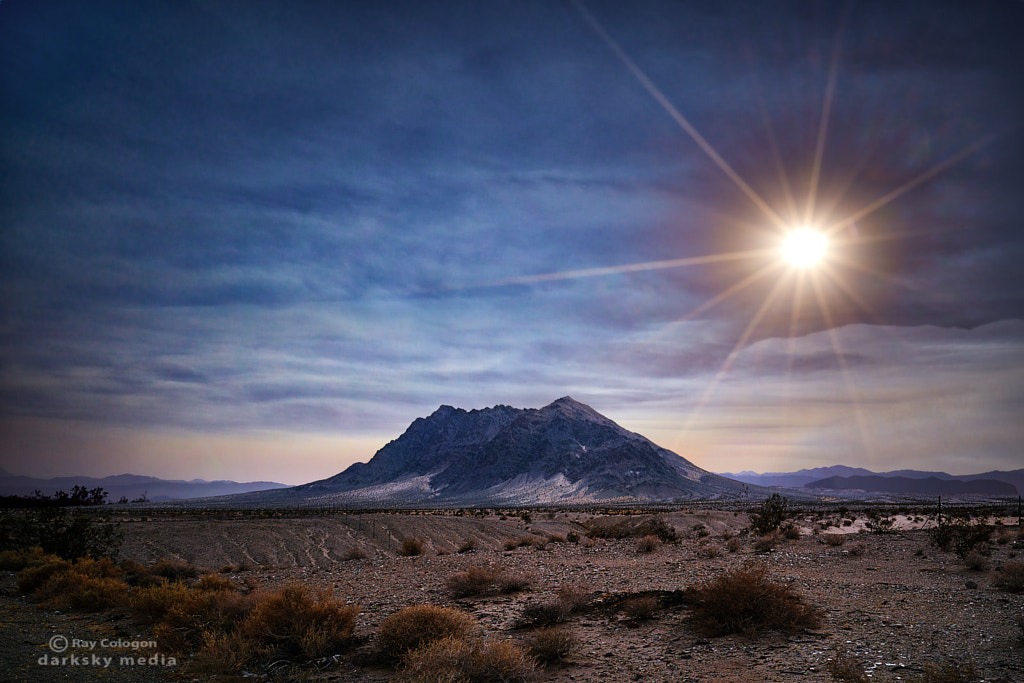 A desolate giant rises to meet the murk of late afternoon in the desert reaches of California.