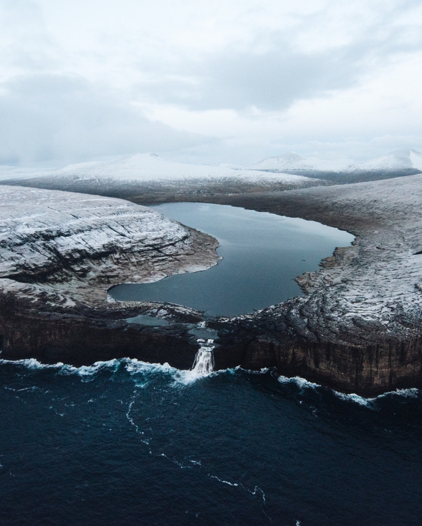 Sorvagsvatn. Faroe Islands. The largest lake in the Faroes cascades over 100 feet into the Northern Atlantic on the Bosdalafossur waterfall.