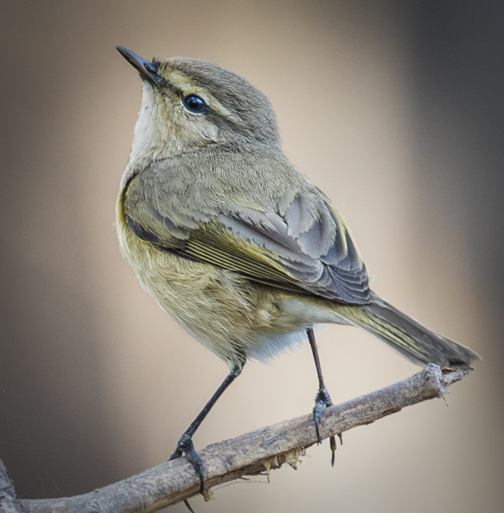 A warbler sitting on a tree branch and appears to be thinking about the heights she can achieve.