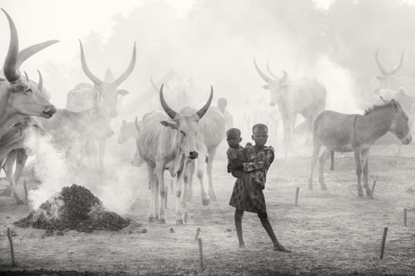 The smoke, fires and dust create a scene which is almost biblical. The symbiotic bond between the Dinka and their cattle is a scene to behold. They massage their Ankole Watusi cattle with ash and do it with care and affection.
