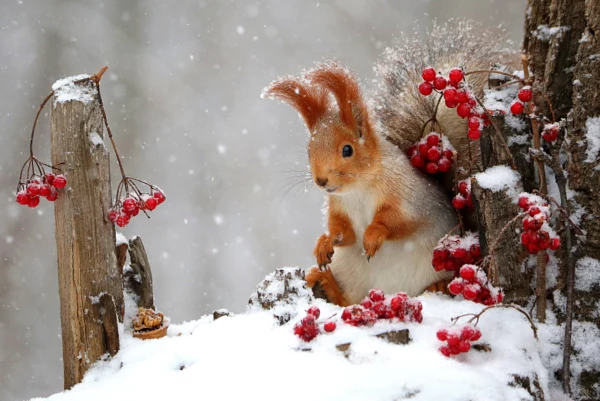 Squirrel in the snow.