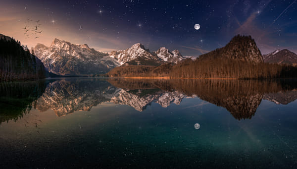 Morgens am Almsee in Grünau Composing mit Pinselwerkzeugen in PS6