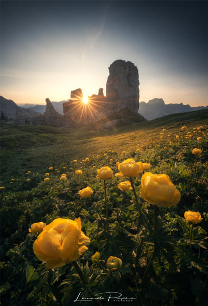ITALY PHOTOGRAPHY TOURS: www.tuscanyphotographytours.com || GALLERIES AND WORKSHOPS: www.leonardopapera.com [ENG] An old cliché shot of the Dolomites: the magnificent Cinque Torri among which the sun peeps out on a crystal clear summer morning. The first lights hit part of the fields and the flowers still dampened by the dew; contrary to what one would think, that morning (even considering the altitude) was really very cold even compared to the seasonal averages, with temperatures just above freezing. [ITA] Un vecchio scatto di un cliché dolomitico: le magnifiche Cinque Torri tra cui fa capolino il sole in una limpida mattinata estiva. Le prime luci colpiscono parte dei campi ed i fiorellini ancora inumiditi dalla rugiada; al contrario di quel che verrebbe da pensare, quella mattinata (anche considerando l’altitudine) fu davvero molto fredda anche rispetto alle medie stagionali, con temperature poco al di sopra dello 0.
