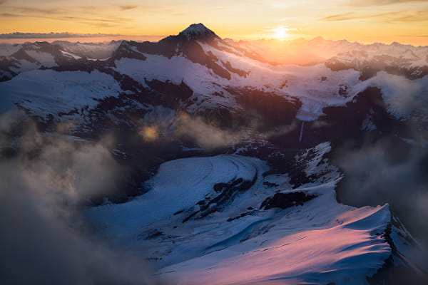 The glistening peak, Mount Aspiring, rising up to almost 10,000ft in a land dominated by ice. The mountains call, drawing us in with their mighty heights and mysterious faces that come to life in the light.