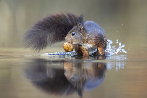 a red squirrel gets a nut out of the water.... You have got to love nature and its creations. Have a great day, my friend!