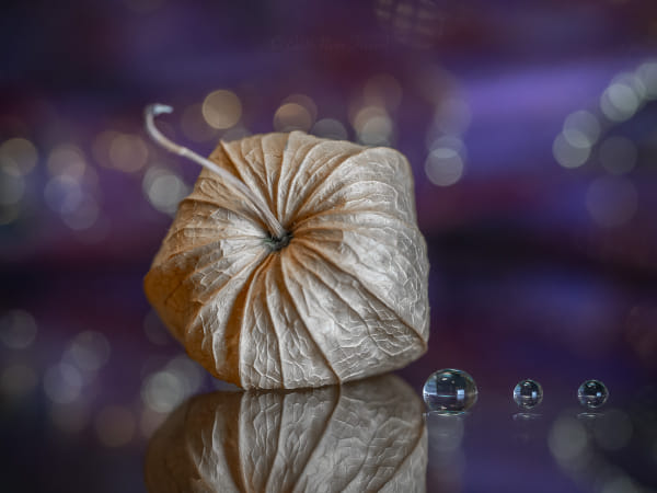 stilllife , composition with physalis and water drops