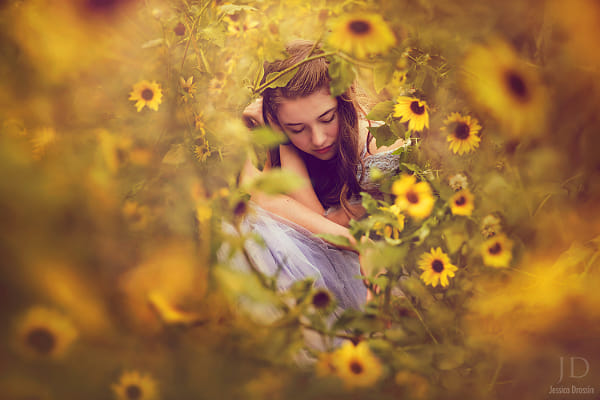 A slight rework from a few years back. Fantasy-Inspired image of a teen girl as seen through a prism of flowers. Senior Portrait Inspiration | Magical Edits | Creating Fairytales and Storytelling Images | Jessica Drossin Edit Using Actions and Overlays | Yellow Gold Image | Fine Art Portraiture | Painting Inspired Portraits | Natural Light Portraits | Jessica Drossin Workshops | Editing with Photoshop | Tools and Tutorials for Fine Art Edits. www.JessicaDrossin.com