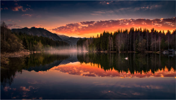 Abends bei Sonnenuntergang beim Murkraftwerk in Fisching