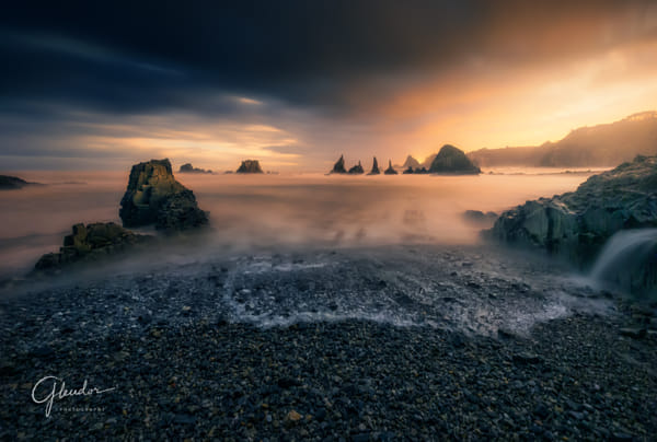 Noche en la playa de Gueirúa momentos después de que la luna llena asomase tras el horizonte.