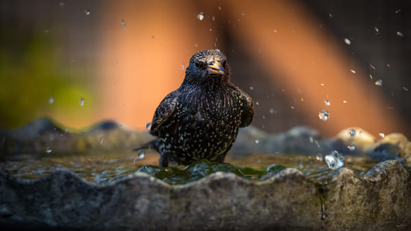 Starling taking a bath...