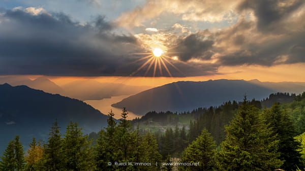 Stormy mood with evening sun high above Lake Thun by Ruedi & Birgit Immoos