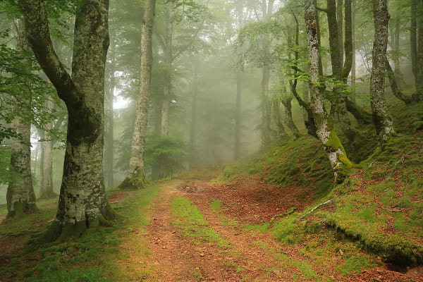 Strolling Along the path of the beech forest with mists by Jordi Carreras