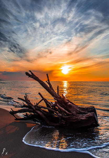 Sunset with tree stump by بواللحم - م