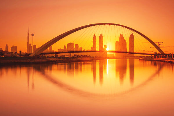 The sunrise/morning moment view through this beautiful bridge in Dubai-UAE- The golden eye.