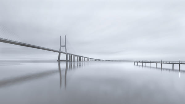 Morning moment at Vasco da Gama Bridje in B&W