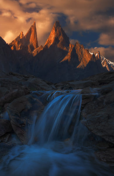 7月的冰川融水汇聚成溪流流经这冰川湖旁的Khoburtse营地,前方张牙舞爪的山峰壁立千仞。黄昏是这一天的结束,更是即将踏入冰雪之境的开始。 #风光摄影#