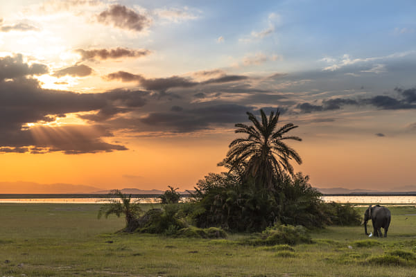 elephant in. sunset