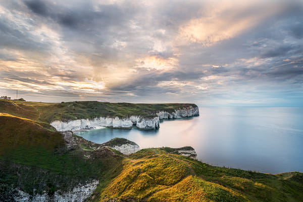 Sunset over Flamborough cliffs in East Yorkshire, UK
