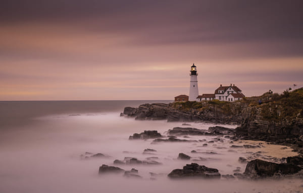 Portland Head Lighthouse in Cloudy Sunrise by John S