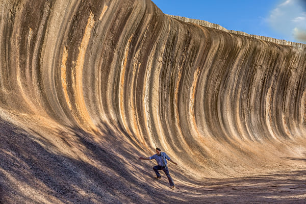 Wave Rock is a natural rock formation that is shaped like a tall breaking ocean wave. This world-famous rock is a granite cliff, standing 15 metres high, 110 metres long and shaped remarkably like a huge wave.Lies about 3 km east of the small town of Hyden and 296 km east-southeast of Perth, Western Australia