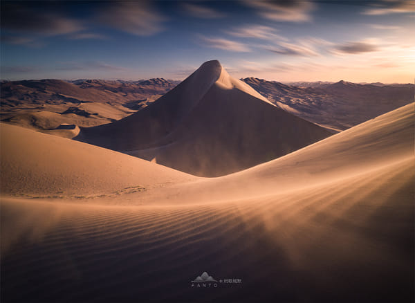 拍摄这张时,真可以叫风起云涌,大风将沙子吹得四处飞扬,远处的沙丘,从幽深的谷底拔地而起,如同一座巨大的金字塔,斩破巨浪,裹挟着浪花从海底缓缓升起,在阳光的照耀下,发出璀璨的光芒,威严耸立,万物顷刻间陷入沉寂与敬畏,不再有纷争,不再有喧嚣,仿佛昭示着新世纪的到来,~ #有意味的形式# #人间观察# #云天空# #来一场说走就走的旅行# #记录时代踪迹# #这是我的世界#