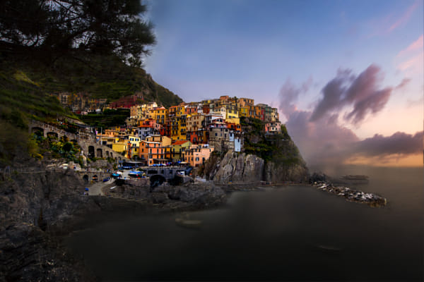 Romantic Manarola is a charming hamlet which spills down a ravine to the wild and rugged Cinque Terre coastline. Besides its natural beauty, the village is also famous for its sweet Sciacchetrà wine. It is lined with numerous brightly painted houses, priceless medieval relics and a tiny harbour that features a boat ramp and a swimming hole.