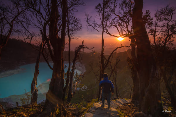 Sunrise at Kawah Putih Crater, Bandung Resident, West Java Province, Indonesia.