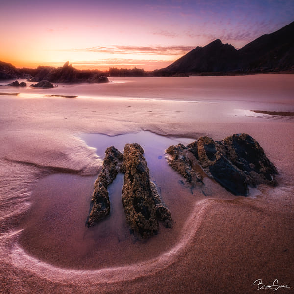 The day had been warm, calm and serene, but there was a kind of whisper that called out to me. Curiously, I decided to listen to what he was trying to say to me. The night would come soon and, as my steps took me towards this little buzz, I started to understand what he was saying to me: "Barefoot, feel the grains of sand rubbing your salty skin by the dazzling sea and contemplate the heat of another ending day that is reflected in the rocks around you" So I did, next to two small rocks that, like me, contemplated those wonderful tones that the sunset gives us. And, looking at them, I thought, are they at the same time waiting for their sea to return waiting patiently in its small salt lake? Costa Vicentina, an unforgettable place!