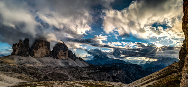 The Landscape Photographer A stormy sunset at Tre Cime - a landscape photographer on the very right Limited Edition, Dolomites, Italy For more information: www.gemcam-photography.com