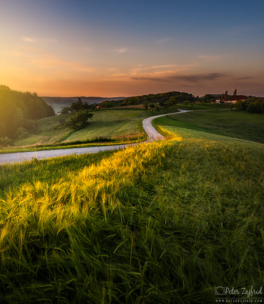 First morning light on the field above Pernica lake, Slovenija