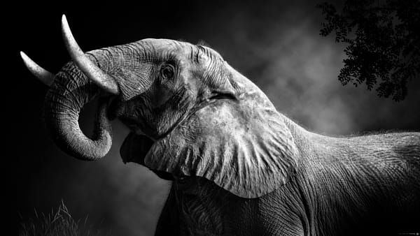 Six tonnes of robust mass in graceful motion. That is the majestic African Bull Elephant for you. The largest land animal on the planet. With body mass that overfills the frame and wrinkled texture details that fills every inch, he is for sure one of my most preferred photography subjects. Monochrome processing can create some stunningly beautiful visuals. The secret is all about contrast. And the Hex Code for Hard Black is #000000.