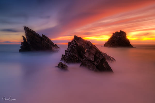 Another day ended where work occupied my mind, drained my energy, made me feel useful too! But the energy that remained had only one goal, run to Praia da Adraga. Already with my feet in the sand, the familiar feeling of inner peace quickly came over me. From that moment, I was just there in that idyllic place; my mind just wanted to rest as it spread across that landscape that seemed to change each second! It was late, well after sunset. The sea began to blend with the sky, the lights spread by the beautiful Sun mingled in the water bringing a whole fantasy world to my head. "This is magic", I thought! It was then that the night announced itself, bringing with it its cold tones that were already embedded with the warm colours that the Sun was still spreading. I couldn't quite understand what was happening anymore. Then I tried to look at it better; I rubbed my eyes to see it well. All this panoply of tones and water in its most varied forms involved the three most beautiful rock triangles that can exist in our Portugal. These, undaunted and serene, were there, firm, with solid roots coming from the bottom of the sea, watching all this scenery as if they understood and accepted everything! I just humbly felt the happiness of having been there that day, returning to the roots of my home and family full of another kind of energy!! The energy of those who want to enjoy the beautiful walk of life!