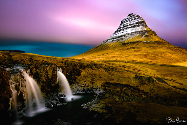 After the sunset we went to dinner. Then we came back, hoping to see the the beautiful green Auroras dancing in the sky. But not that night. Clouds were coming in above the beautiful Kirkjufell, and we knew that it were not to be in that night. But, as I was outside freezing at -10ÂșC I went for the composition anyway. No light at all, just guessing a good composition in the dark freezing night. Then, in that night, the aurora was in Purple ways!! Did you know that the word "aurora" comes from the Latin word for "dawn, morning light", since auroras were formerly thought to be the first light of dawn? Me neither!!