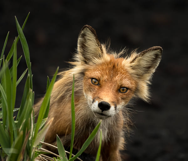 Red fox, the main predator of the Kuril Islands. The photo was taken on Atlasov island, Kurils